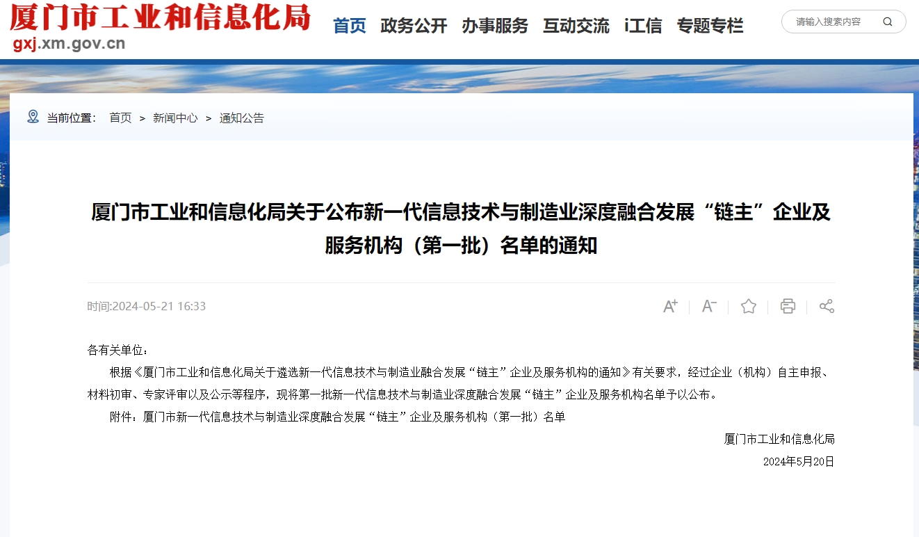 近日,廈門(mén)市工業(yè)和信息化局公示了【廈門(mén)市新一代信息技術(shù)與制造業(yè)融合發(fā)展“鏈主”企業(yè)及服務(wù)機(jī)構(gòu)(第一批)名單】的遴選結(jié)果,物通博聯(lián)憑借專(zhuān)業(yè)的數(shù)字化轉(zhuǎn)型服務(wù)能力和高質(zhì)量的落地服務(wù)經(jīng)驗(yàn),入選廈門(mén)市首批“新一代信息技術(shù)與制造業(yè)深度融合發(fā)展云服務(wù)商(平臺(tái))”。