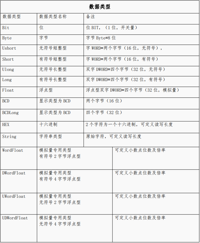 下載中心 視頻中心 常見問題 售后服務 工業網關 設備快線 數據云平臺 聯網設備 問答百科 網關支持采集的數據類型有哪些? 時間:2022-10-26 09:39:53 點擊:7600 關鍵詞:工業網關,數據采集,數據類型 問題:網關支持采集的數據類型有哪些? 回答:網關支持采集的數據類型如下表 : 上一篇:工業智能網關會運行時會自動重啟怎么處理? 下一篇: 網關采集modbus協議設備時,寄存器類型和地址如何選擇?