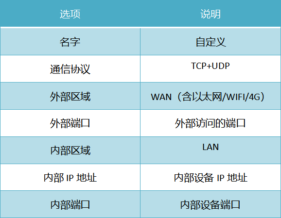 下載中心 視頻中心 常見問題 售后服務 工業網關 設備快線 數據云平臺 聯網設備 問答百科 工業網關如何配置端口映射? 時間:2022-10-26 09:39:53 點擊:6304 關鍵詞:工業網關,網關配置,端口轉發 問題:工業網關如何配置端口映射? 回答: 網關配置界面—防火墻—端口轉發 端口轉發允許來自Internet的計算機訪問私有局域網內的計算機或服務 使用場景:端口轉發是將發往外網的一個端口的通信完全轉發給內網一個地址的指定端口 上一篇:如何通過物通博聯工業網關實現網口設備遠程上下載? 下一篇: 工業智能網關支持的電壓范圍?