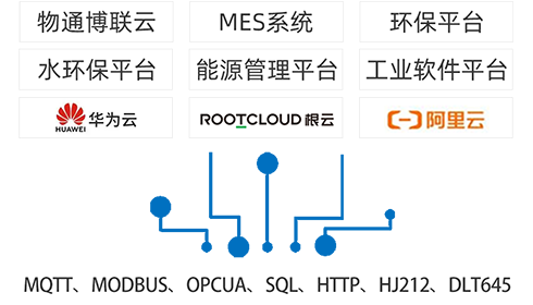 支持通過(guò)MQTT、MODBUS、OPCUA、SQL、HTTP數(shù)據(jù)庫(kù)等方式接入遠(yuǎn)端軟件平臺(tái)(包含:物通博聯(lián)云平臺(tái),客戶自主開(kāi)發(fā)的云平臺(tái),根云、美云、華為、阿里、百度、微軟等IOT云平臺(tái),組態(tài)軟件、MES系統(tǒng)、ERP系統(tǒng)等工業(yè)軟件)
