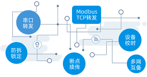 串口轉(zhuǎn)發(fā)、Modbus TCP轉(zhuǎn)發(fā)、設(shè)備校時(shí)、防拆鎖定、斷點(diǎn)續(xù)傳,多網(wǎng)互備等等
