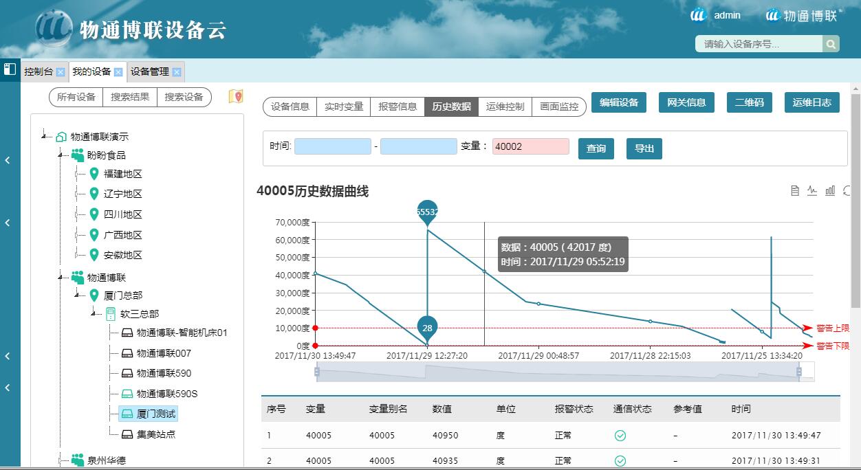 物通博聯·設備遠程接入云平臺是一款針對分布式設備數據實時監測的快速接入平臺,采用SAAS云服務方式為工業現場的各種工業設備的數據互通互聯建立實時在線的數據通道。