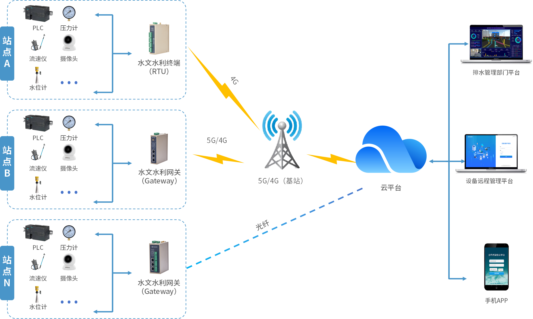 實時監測管網內水位、流量、流速、水壓等重要參數,快速配置數據上傳周期,實現全天候7*24小時實時監控。