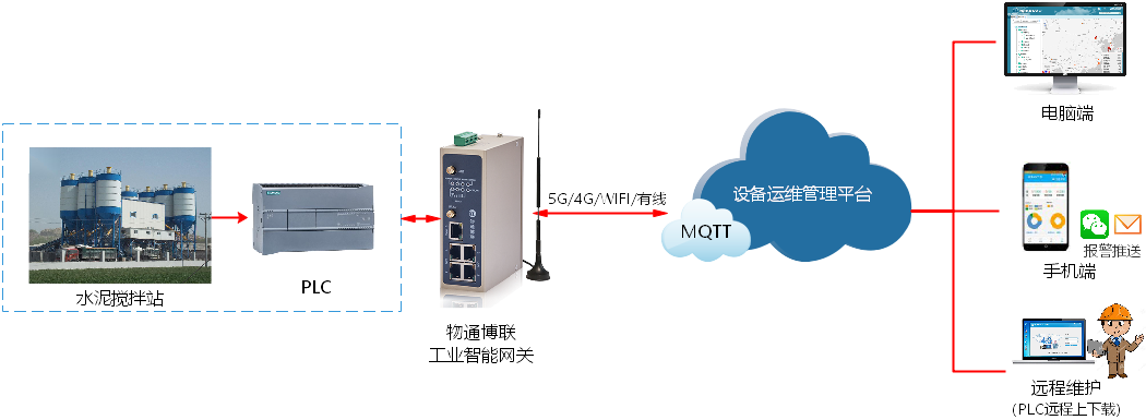 隨著大規模基礎設施建設的不斷開展、水泥攪拌設備的需求與日遞增,對其維護保養的要求也在不斷提高。在項目實施中,水泥攪拌機可能遍布全國各地,對于設備制造商提供設備運維服務帶來較大挑戰。一方面,企業需要付出較多人員、時間和精力前往現場出差,影響服務效率;另一方面,頻繁出差也在加重企業的成本負擔。因此,建立一套高效及時的設備運維系統有其必要性。